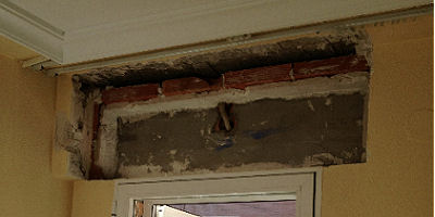 Pose d'une ossature de coffre de volet roulant, avec du plâtre B1. |