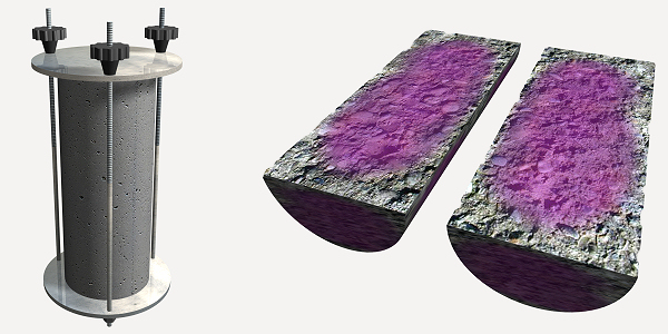 Essai pour déterminer la profondeur de carbonatation d'un échantillon de béton durci. |